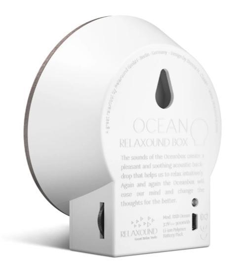 Even wegdromen bij het geluid van de zee? De Relaxound Oceanbox zorgt ervoor. Zodra je langsloopt, vult je ruimte zich 100 seconden lang met rustgevende oceaangeluiden: rollende golven, meeuwen op de achtergrond, kabbelend water. Alsof je je direct op een verlaten strand bevindt.