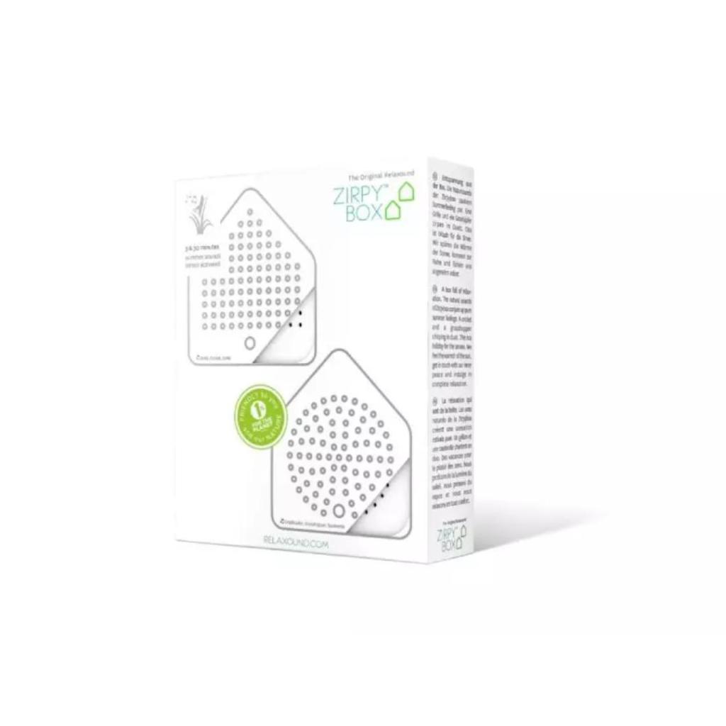 De Relaxound Zirpybox White LC brengt de zomer naar binnen met rustgevende natuurgeluiden. Deze set van twee boxen laat afwisselend het getjirp van een krekel en het geluid van een sprinkhaan horen, waardoor een realistisch stereo-geluid ontstaat. Zo ervaar je steeds opnieuw de ontspannen sfeer van een zonnige zomerdag.
