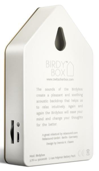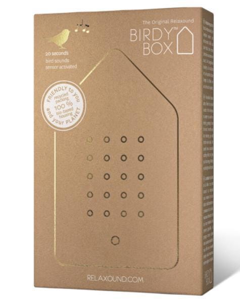 De Birdybox zorgt voor directe ontspanning op elke plek. Het vogelconcert klinkt 20 seconden lang. Of het nu op de koffiemachine, boekenplank, bureau of vensterbank is: een moment van ontspanning is overal welkom. Deze Birdybox is gemaakt van koper, dit materiaal oxideert als er zuurstof bijkomt. Dit is een natuurlijk proces en dit hoort zo.