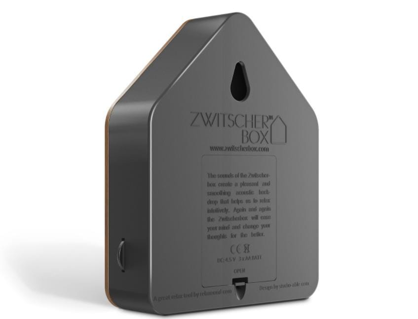 De natuurlijke klanken van de Zwitscherbox creëren een sfeer waardoor je je beter gaat voelen en ontspannen. Het is altijd een verrassing hoe het onze gedachten kan veranderen en ons onze zorgen kan doen vergeten. Thuis of op kantoor laat het vrolijke getjilp van vogels ons even in een wereld duiken zonder stress en tijdsdruk. We ademen en komen tot rust, zoals bij een boswandeling.