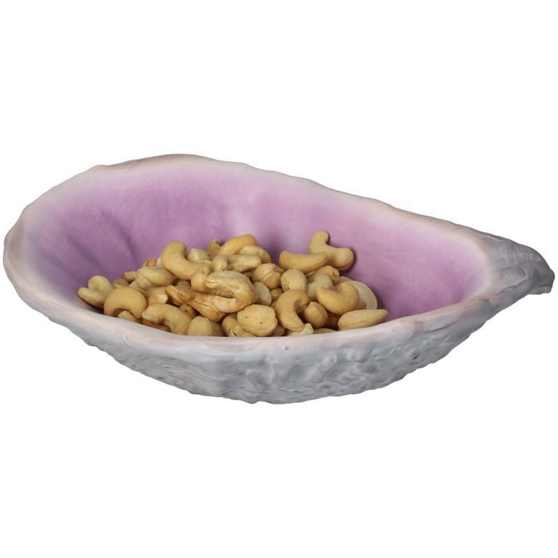Deze lila schaal van dolomietporselein in de vorm van een oester, KerstenBV. zorgt voor een mooi, kleurrijk accent op je gedekte tafel.