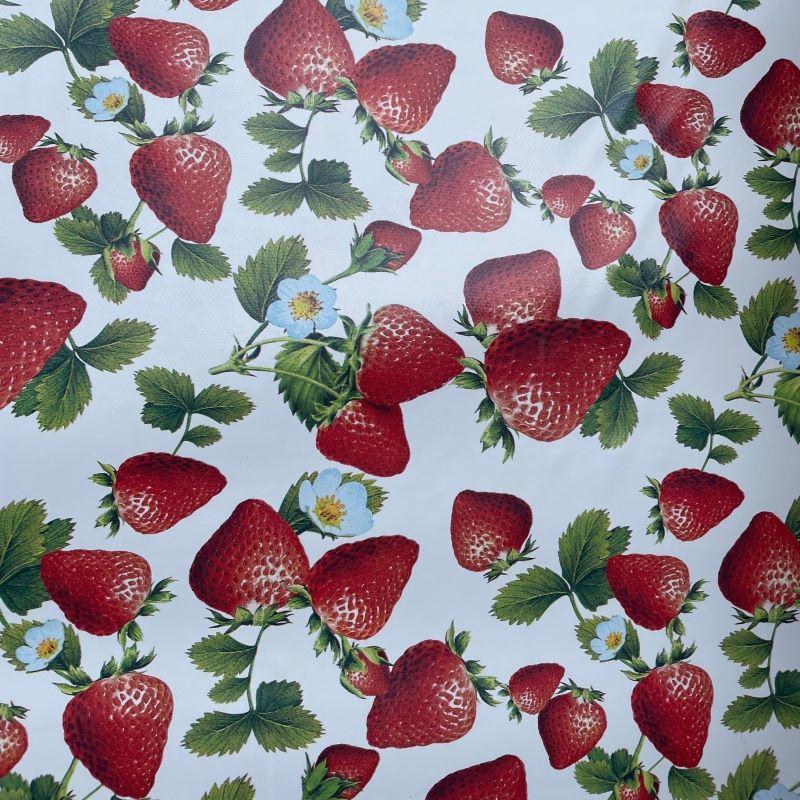 Tafelzeil Aardbeien – Zomerprint met rood fruit, 140 cm breed, per 10 cm van de rol